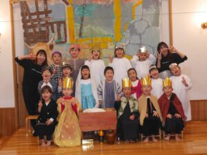 最後のクリスマス会❕今までがんばって練習した聖誕劇を発表しました。大きな声で堂々と演じる姿はとても立派でした✨たのしく終えることが出来ました!!